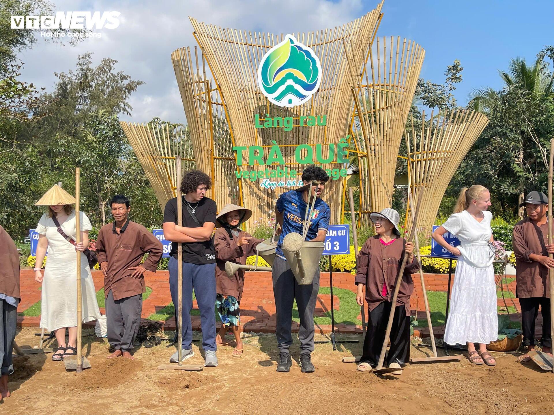 Tại khoảnh đất nhỏ nằm giữa cánh đồng rau sạch, những vị khách quốc tế bày tỏ sự thích thú khi "sắm vai" nông dân. Hòa mình vào hội thi, du khách nước ngoài hào hứng cầm cuốc, gánh nước tưới rau và không quên ghi lại những hình ảnh ấn tượng khi tham quan làng rau sạch nức tiếng miền Trung đúng vào dịp lễ hội.