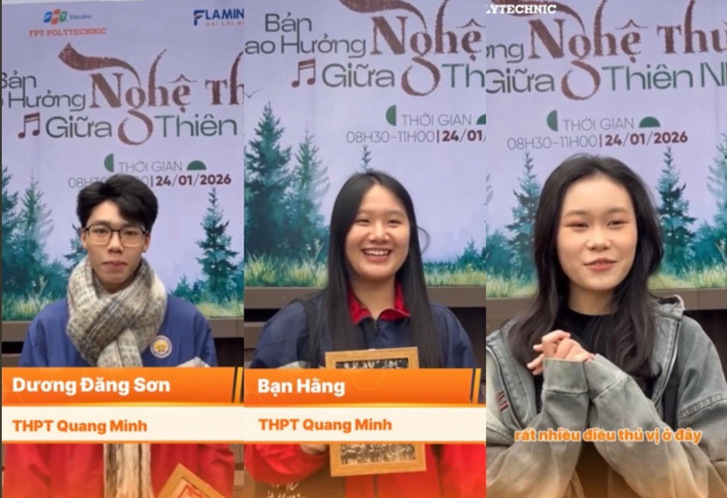 Tham gia sự kiện với tâm thế háo hức, nhiều học sinh phổ thông đã có những trải nghiệm đáng nhớ tại “Bản giao hưởng nghệ thuật giữa thiên nhiên”. Em Dương Đăng Sơn, học sinh Trường THPT Quang Minh chia sẻ, em đặc biệt ấn tượng với không khí sôi động và đa dạng của chương trình. Không chỉ được hòa mình vào đường chạy, Sơn còn thích thú khi được thưởng thức các tiết mục âm nhạc, tham quan không gian trưng bày tranh và tham gia các hoạt động giao lưu cùng sinh viên. Theo em, chính những sân chơi bổ ích này đã giúp học sinh có thêm cơ hội kết nối, mở rộng mối quan hệ và hiểu rõ hơn về môi trường học tập tại FPT Polytechnic. Sơn bày tỏ mong muốn sẽ có cơ hội trở thành sinh viên của trường trong tương lai.