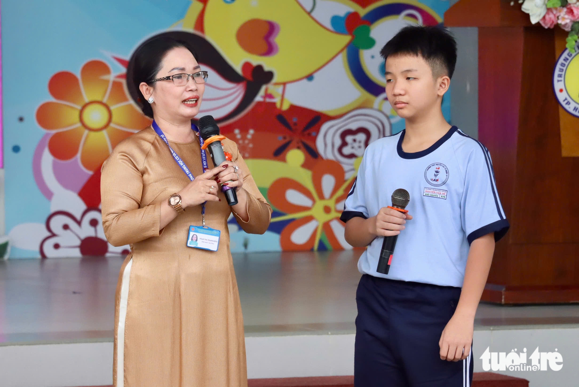 Chương trình "Gọi tên cảm xúc" do Khối ấn phẩm Khăn Quàng Đỏ - Báo Tuổi Trẻ phối hợp cùng Công ty TNHH Bayer Việt Nam tổ chức tại Trường THCS Nguyễn Văn Tố (phường Diên Hồng, TP.HCM) sáng 5-1.