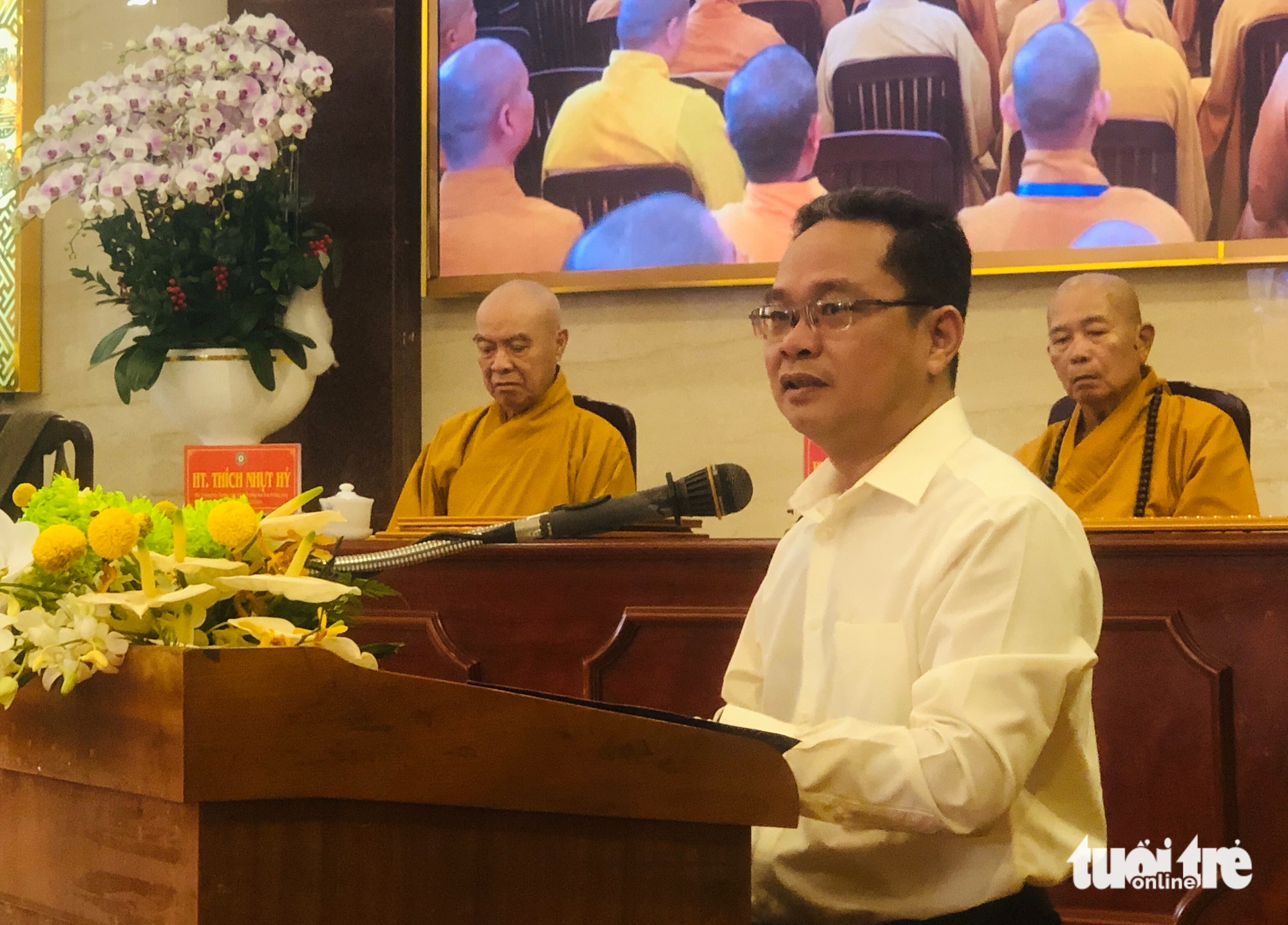Hòa thượng Thích Lệ Trang - Trưởng Ban trị sự Giáo hội Phật giáo Việt Nam TP.HCM - phát biểu khai mạc.