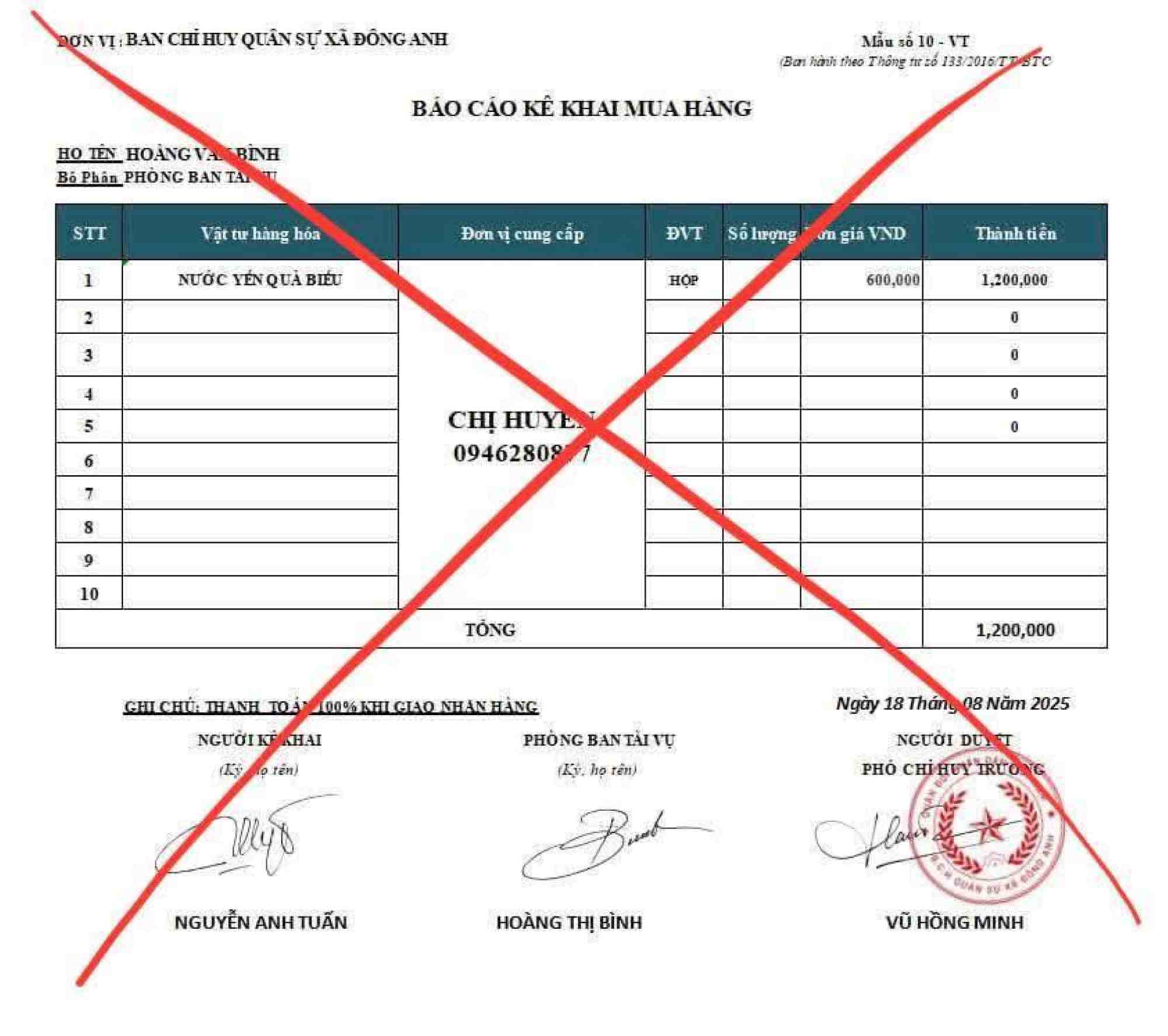 Tuy nhiên, sau khi gửi ảnh “giấy giới thiệu” và “hợp đồng đặt hàng”, đối tượng lại giới thiệu thêm một doanh nghiệp (ảo) là “nhà cung cấp yến quen của quân đội” để bà liên hệ lấy hàng mẫu. Tin tưởng, bà Đa chuyển 5 triệu đồng tiền đặt cọc vào tài khoản của doanh nghiệp này. Ngay sau khi giao dịch hoàn tất, các số điện thoại, tài khoản Zalo đều bị chặn, toàn bộ số tiền biến mất.