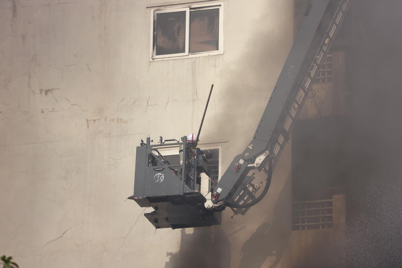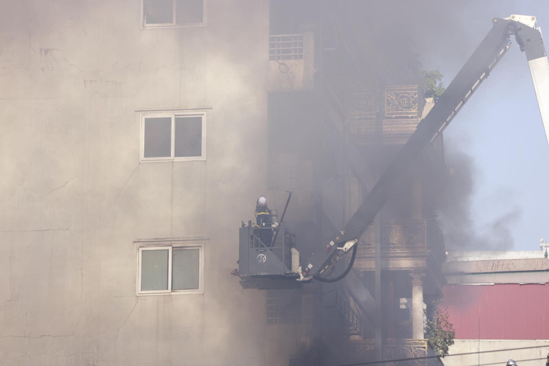 Xe thang cũng được điều động đến hiện trường làm nhiệm vụ. Hiện lực lượng chức năng đang khẩn trương chữa cháy, tìm kiếm cứu nạn.