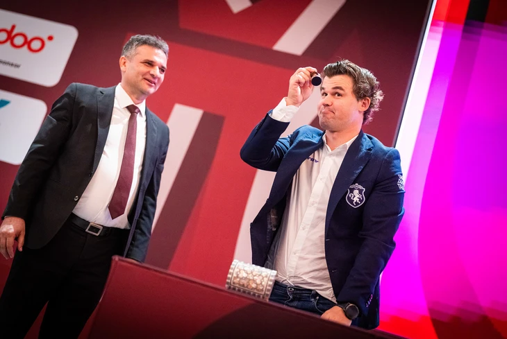 Buổi họp báo khép lại với thủ tục bốc thăm màu quân đầy kịch tính cho các hạt giống hàng đầu. Magnus Carlsen với tư cách hạt giống số một bảng Mở rộng sẽ cầm quân trắng ở nội dung cờ nhanh và cầm quân đen ở nội dung cờ chớp.