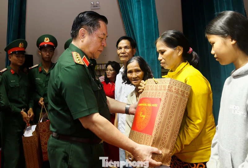 Nhân dịp này, Đại tướng Nguyễn Trọng Nghĩa cùng đoàn công tác đã trực tiếp trao tặng hàng trăm suất quà ý nghĩa từ Đảng, Nhà nước, MTTQ Việt Nam, Quân ủy Trung ương, Bộ Quốc phòng và Quân khu 5 đến các gia đình chính sách, hộ nghèo và công nhân lao động khó khăn trên địa bàn tỉnh Gia Lai.