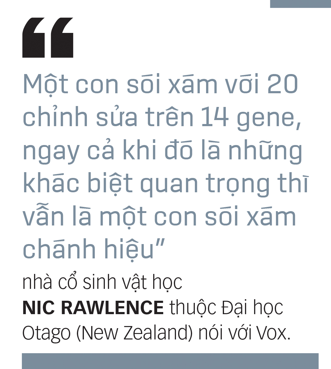 Nhưng có một lỗ hổng trong kịch bản này: sói con của Colossal không phải là loài sói dữ, mà có thể chỉ được xem là sói xám bị biến đổi gene, qua lai tạo và được thai nghén trong bụng chó nhà. Không có sự tuyệt chủng nào được đảo ngược ở đây.