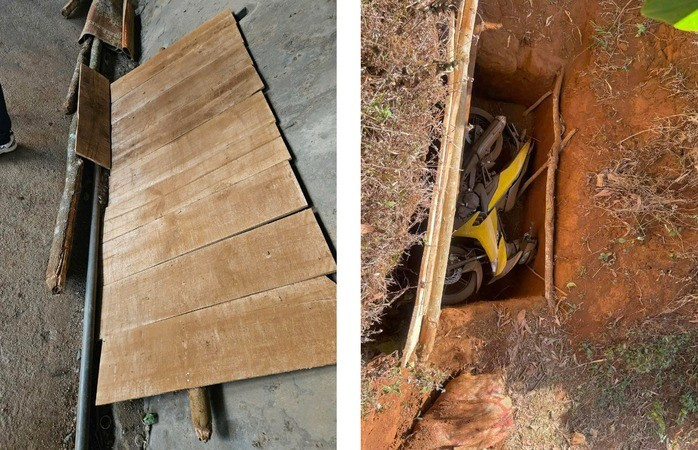 Hố có chiều dài 2 mét, sâu 1,15 m, rộng 0,76 m. Chiếc xe nằm đổ nghiêng dưới hố. Để che cái hố này, các đối tượng sử dụng tấm ván bằng gỗ kích thước 2,26 x 1m, được ghép bởi 9 miếng gỗ thông 3 lá; phủ lên trên 1 chiếu nhựa dài 1,2 x2m. Trên cùng, các đối tượng phủ một lớp đất để ngụy trang.