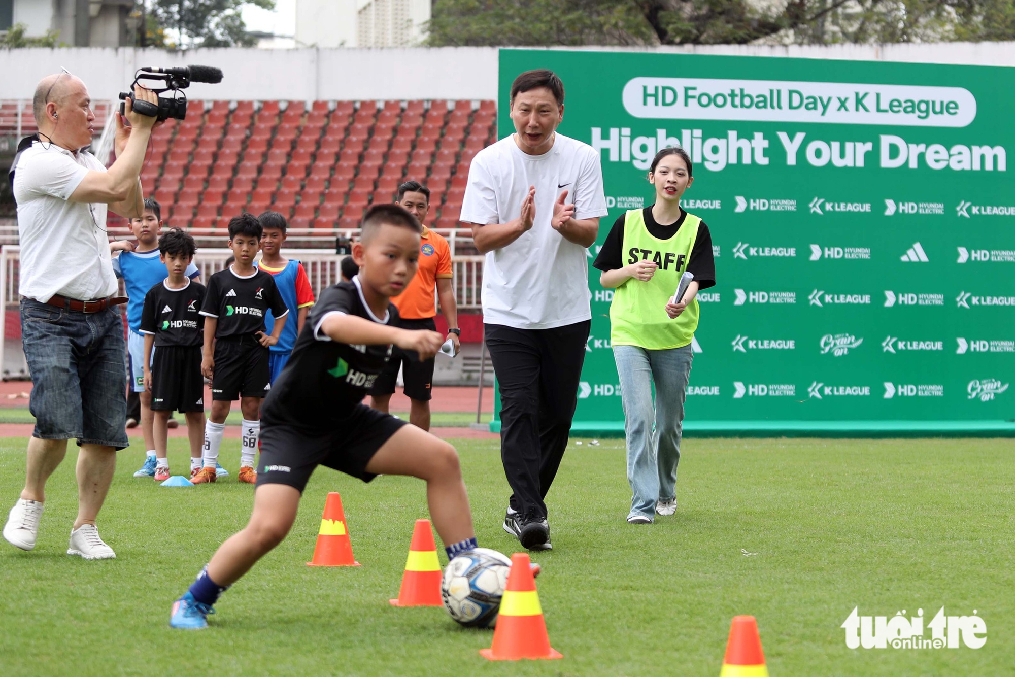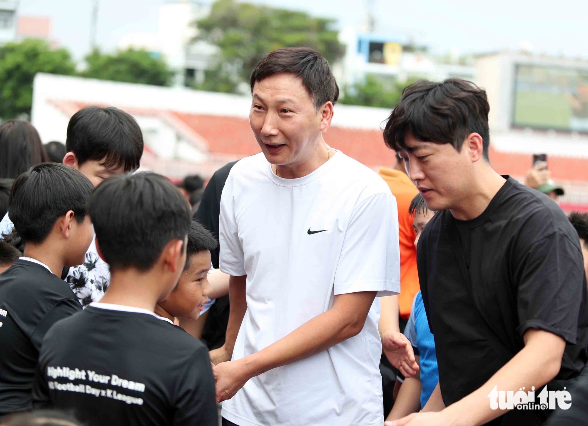 Sự có mặt của HLV trưởng đội tuyển quốc gia Kim Sang Sik đã khiến các em nhỏ lẫn phụ huynh không khỏi hào hứng.