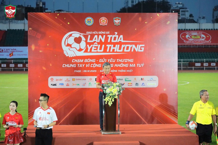 Tối 6-12, Phòng Cảnh sát điều tra tội phạm về ma túy Công an TP.HCM tổ chức chương trình bóng đá thiện nguyện "Khát vọng TP.HCM - Lan tỏa yêu thương 2025" tại sân vận động Thống Nhất.