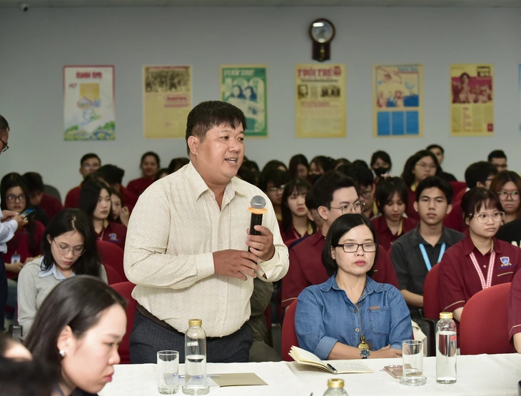 Bạn Minh Thuận - sinh viên khoa Truyền thông sáng tạo, Trường đại học Nguyễn Tất Thành - đặt câu hỏi về việc sử dụng AI trong thiết kế và hoạt hình liệu có làm sai lệch hoặc làm nghèo nàn tư duy thiết kế của người học hay không.