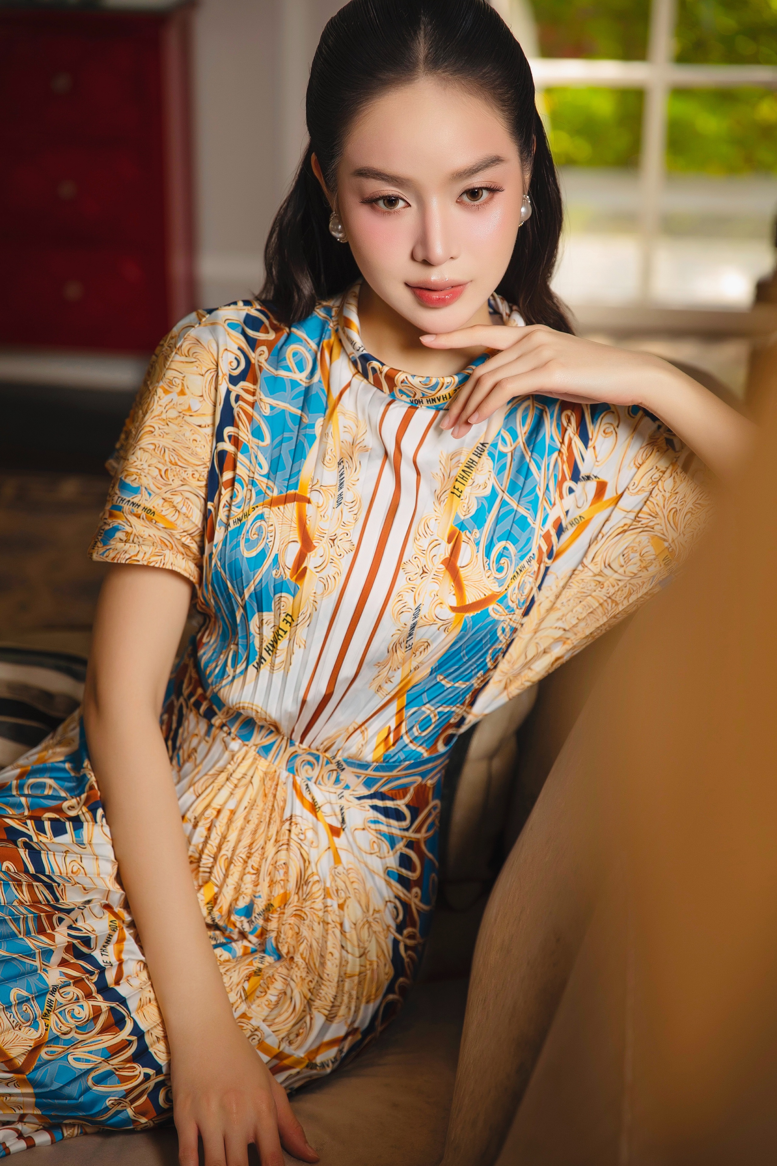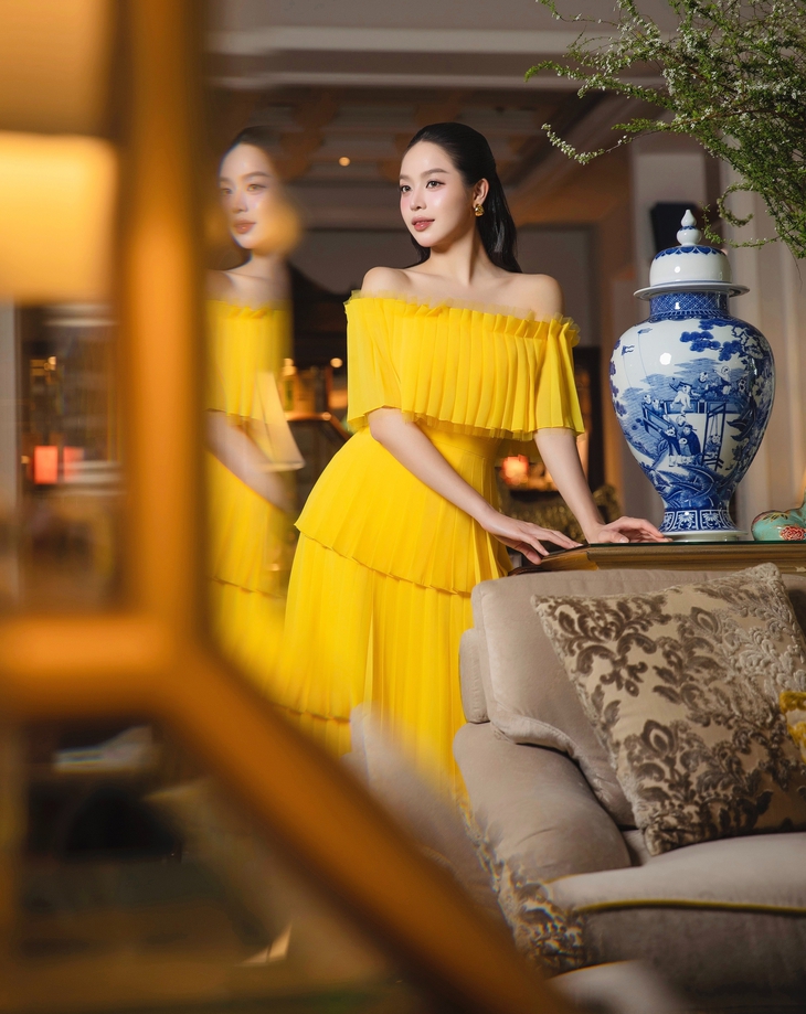 Hoa hậu Quốc tế 2024 Huỳnh Thị Thanh Thủy rạng rỡ trong bộ sưu tập Tết 2026 của nhà thiết kế Lê Thanh Hòa.