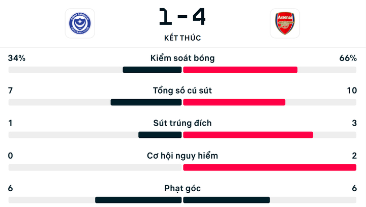 Bước sang hiệp 2, Portsmouth không còn gây ra nhiều khó khăn cho đối thủ như trước. Arsenal làm chủ thế trận với tỷ lệ kiểm soát bóng lên tới 64%. Martinelli ghi thêm 2 bàn sau các pha kiến tạo của Jesus và Madueke để ấn định chiến thắng 4-1.
