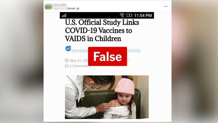 Nghiên cứu liên kết vắc xin COVID-19 với hội chứng VAIDS ở trẻ em song sự thật hoàn toàn không đúng.