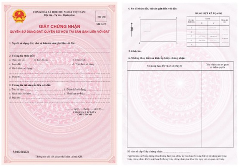 Mẫu sổ đỏ mới này sẽ gồm một (01) tờ có hai (02) trang, in nền hoa văn trống đồng, màu hồng cánh sen, có kích thước 210 mm x 297 mm, có Quốc huy, Quốc hiệu, dòng chữ “Giấy chứng nhận quyền sử dụng đất, quyền sở hữu tài sản gắn liền với đất", số phát hành Giấy chứng nhận (số seri) gồm 02 chữ cái tiếng Việt và 08 chữ số, dòng chữ “Thông tin chi tiết được thể hiện tại mã QR”, số vào sổ cấp Giấy chứng nhận và nội dung lưu ý đối với người được cấp Giấy chứng nhận (được gọi là phôi Giấy chứng nhận).
