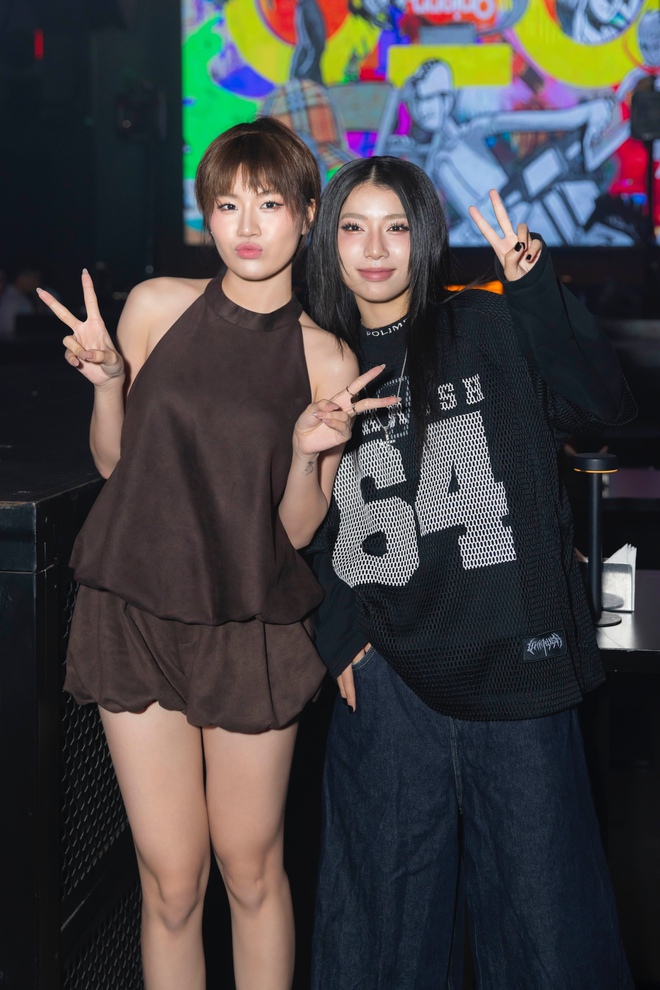 Hai 'em xinh say hi' Pháo và LyHan đến dự, cổ vũ cho OSAD - Ảnh: BTC/LÊ GIANG