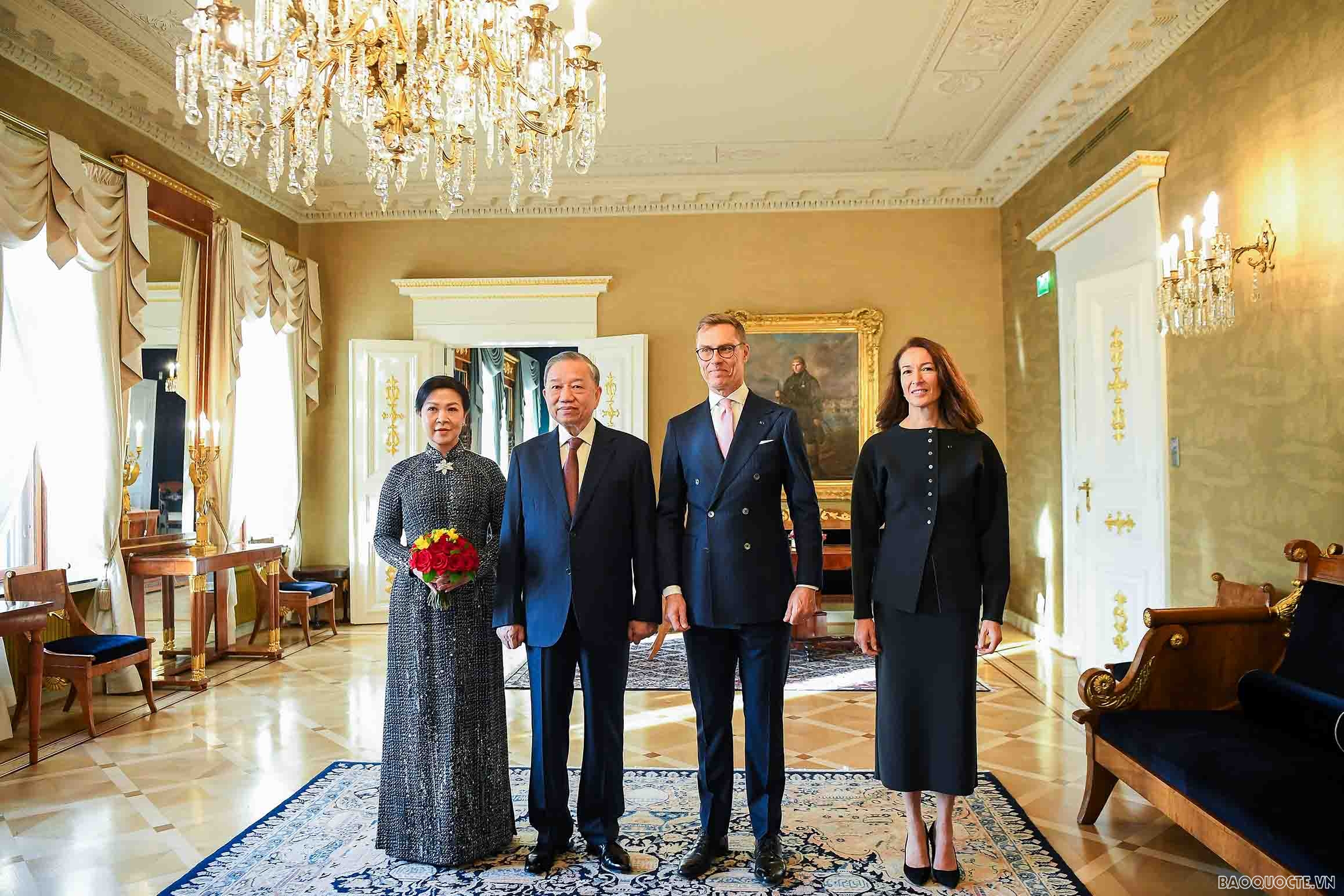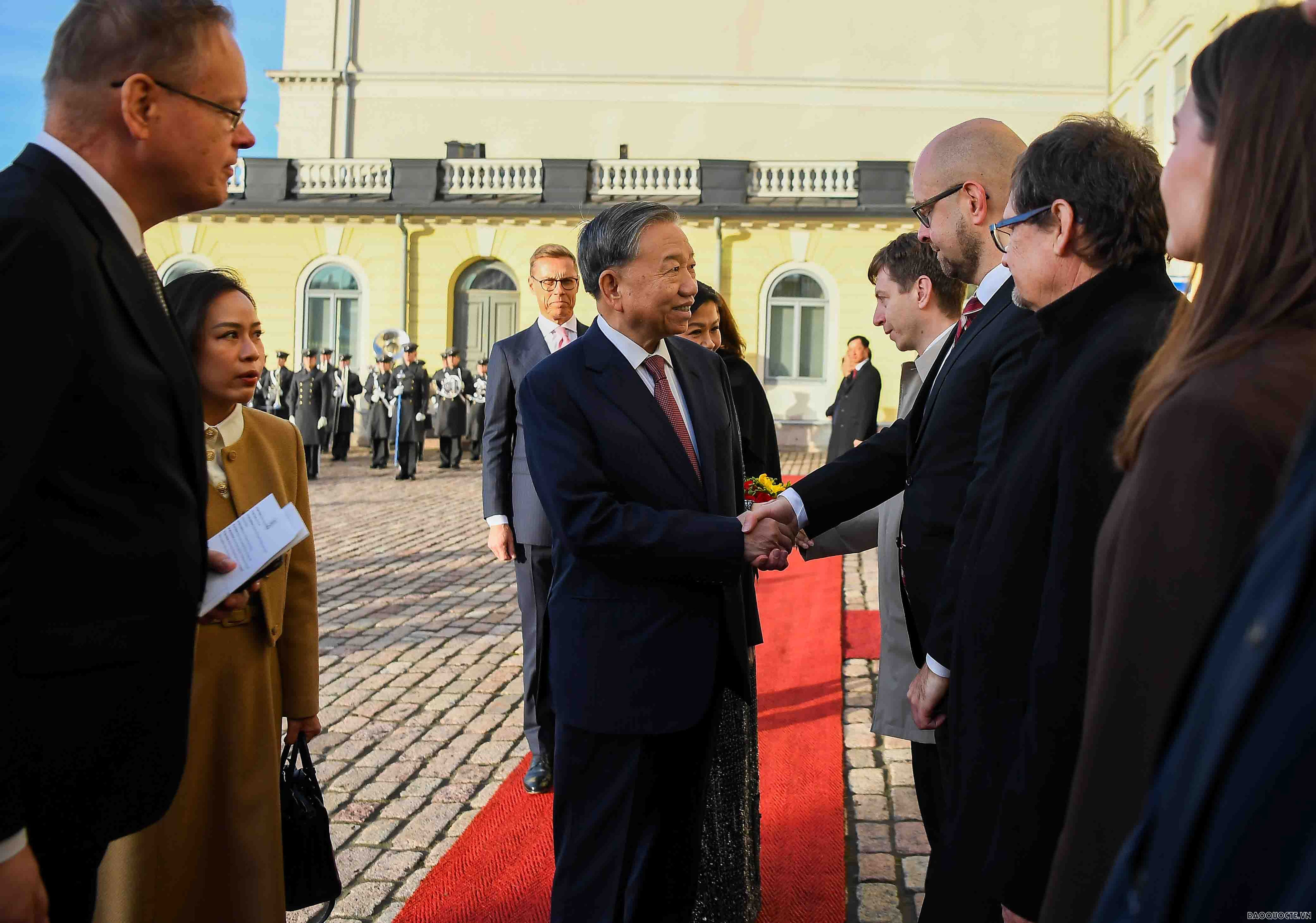 Tổng thống Phần Lan Alexander Stubb và Phu nhân Suzanne Innes-Stubb đã chủ trì lễ đón Tổng Bí thư Tô Lâm và Phu nhân Ngô Phương Ly tại Phủ Tổng thống, đánh dấu mốc quan trọng trong quan hệ hai nước, vào sáng ngày 21/10.