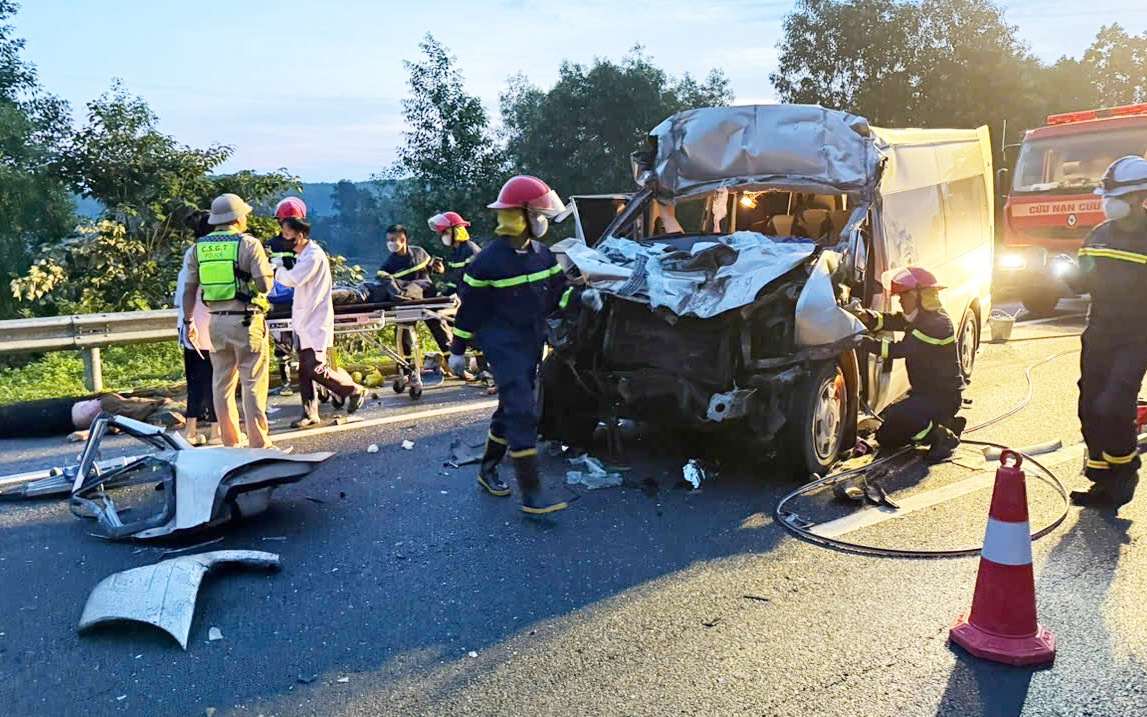 Thời điểm trên xe khách 16 chỗ mang BKS 29B-081.62 do tài xế Phạm Văn Kiều (39 tuổi, trú xã Hải Thịnh, Ninh Bình) điều khiển chạy hướng Quảng Ngãi - Đà Nẵng chở 12 người va chạm vào sau xe đầu kéo BKS 15C-36035 kéo theo rơ moóc 15R-14906 do lái xe Bùi Mạnh Thắng (43 tuổi, trú Hải Phòng) điều khiển chạy cùng chiều trên cao tốc.