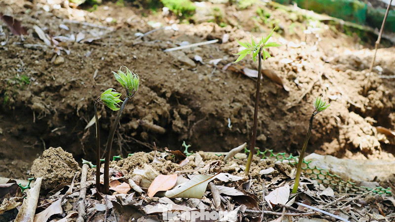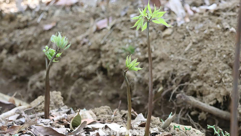 Cây sâm Ngọc Linh bắt đầu đâm chồi non.