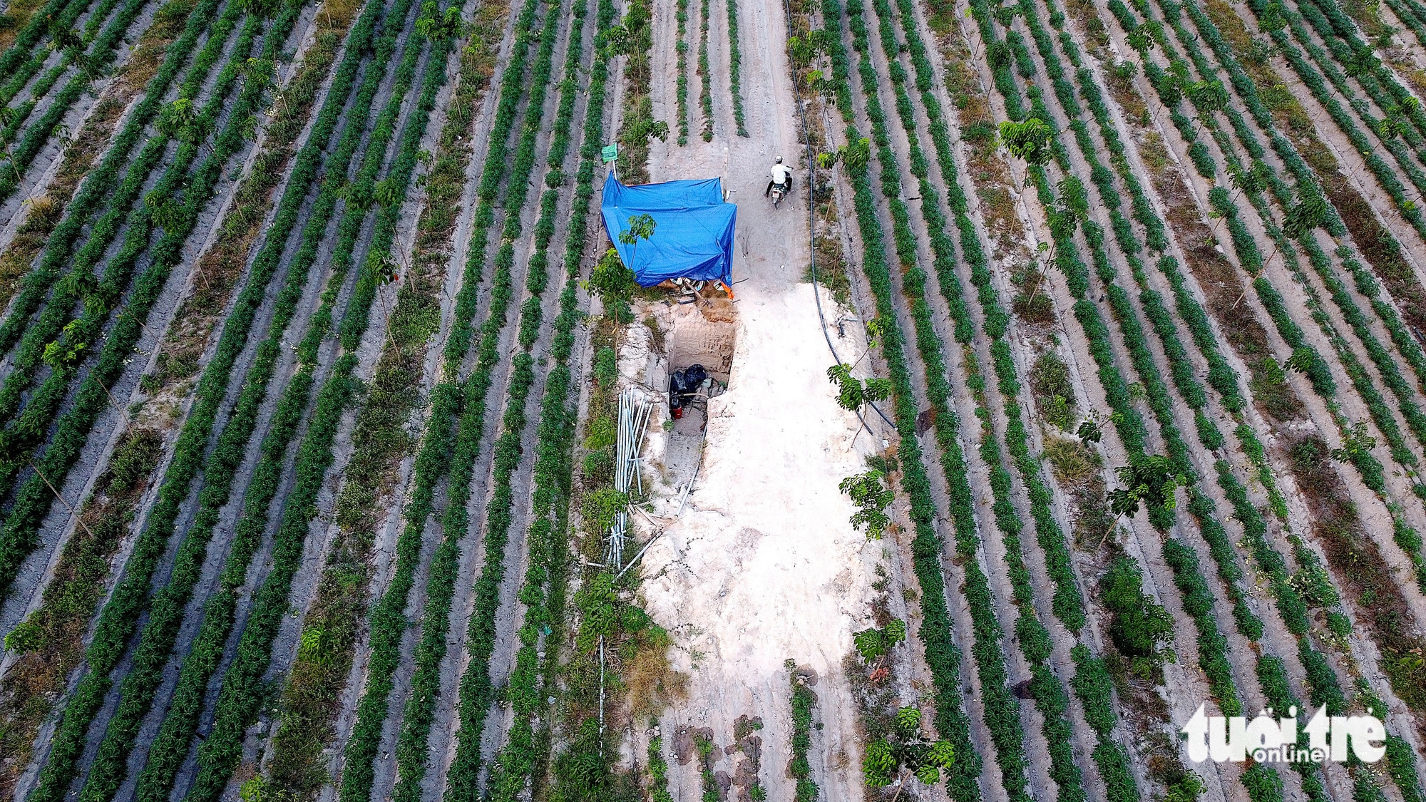 Trên những đồng sắn mới lên non, rất dễ nhận ra những hố đất sâu từ 3-6m được đào lỗ chỗ. Đó là cách mà người trồng sắn phải làm để tìm nước cho những cây sắn đang phát triển có thể chống chọi với mùa nắng gắt và nền đất khô hạn.