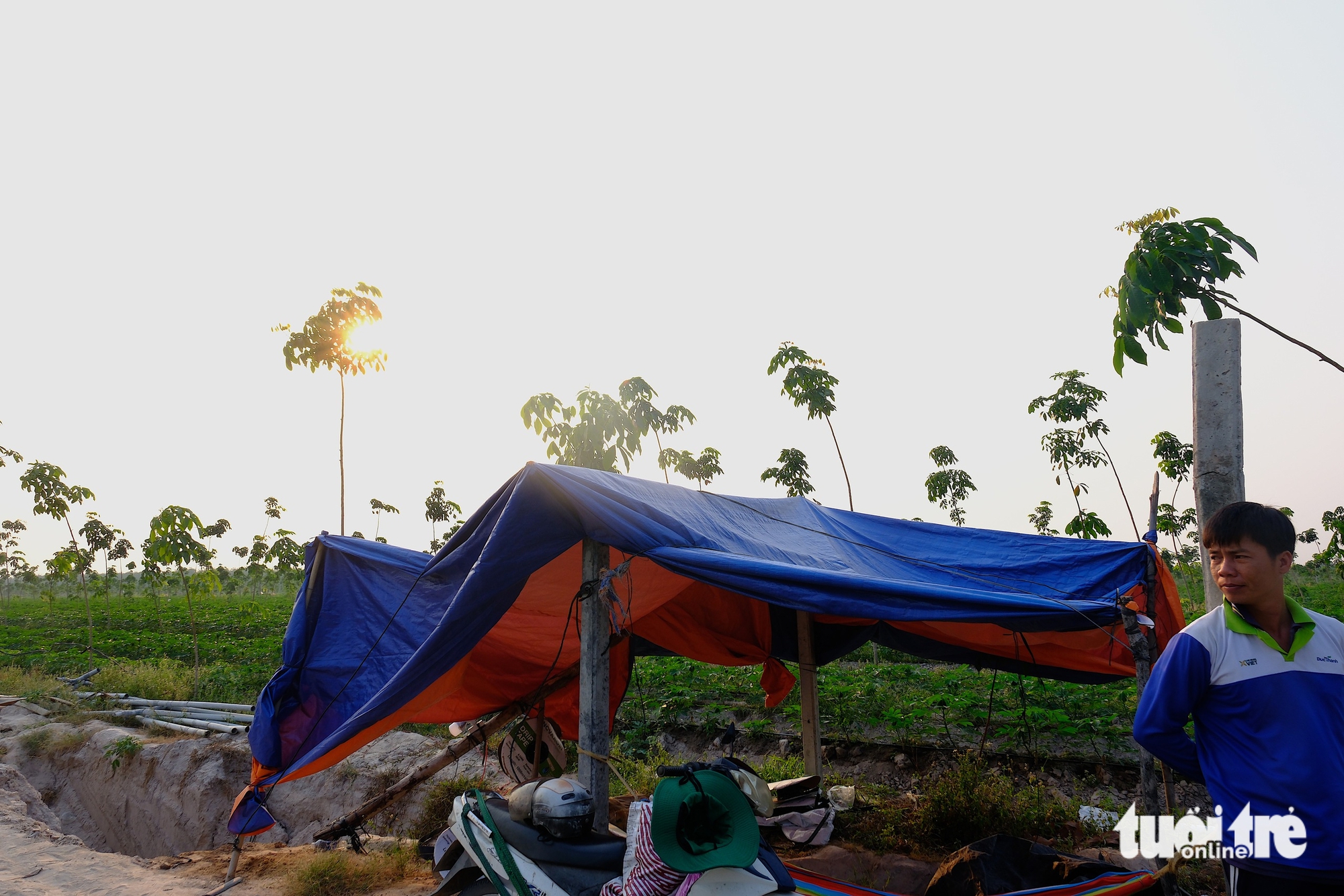 Trong khi đó, phương án trước mắt mà người dân trồng sắn ở đây sử dụng là ... cắt cử người trong gia đình dựng chòi canh giữ các máy mô tơ bơm nước 24/24.