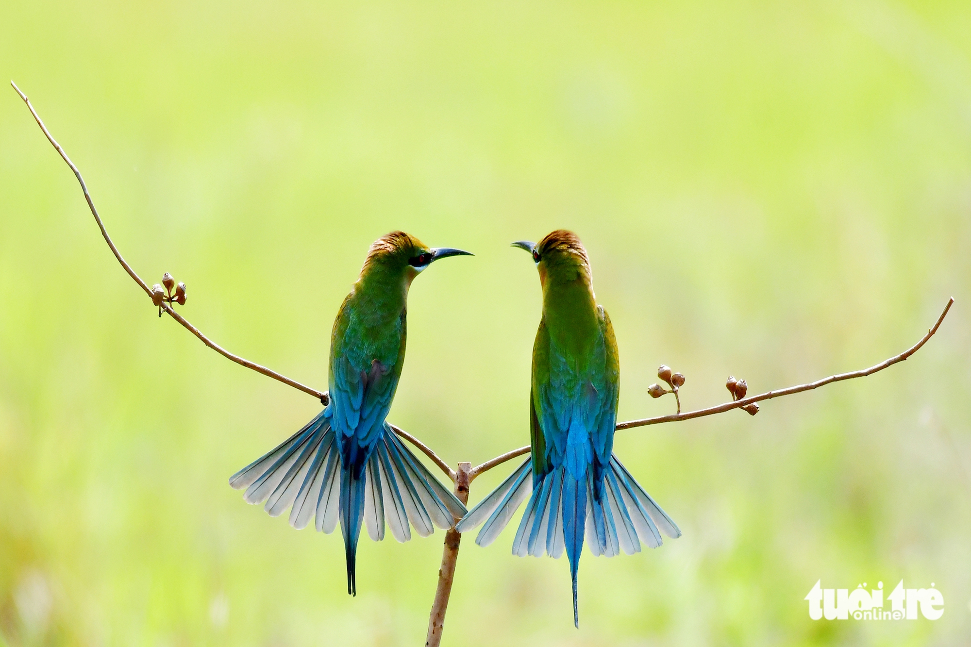 Một số hình ảnh của chim trảu đuôi xanh được ghi nhận tại xã Lưu Nghiệp Anh, tỉnh Vĩnh Long.