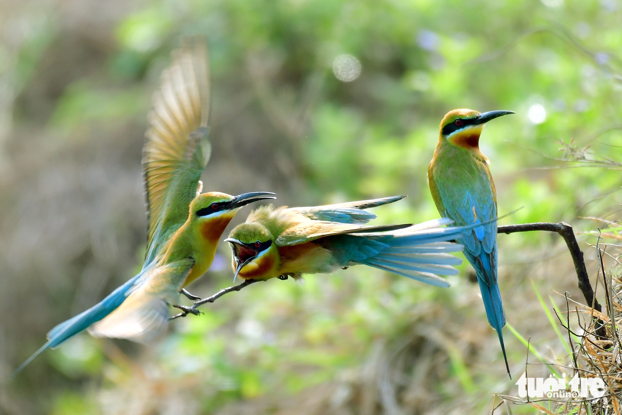 Trước khi mùa mưa bắt đầu, cũng là lúc các loài chim bước vào mùa sinh sản, trong đó có chim trảu đuôi xanh với tên khoa học là Blue-tailed Bee-eater. Đây là loài chim rất đẹp và chỉ sống ở vùng đất giồng cát ven biển.