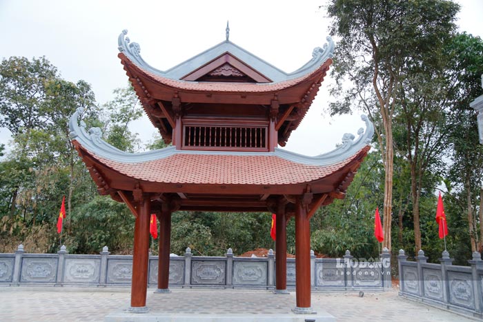 Ghi nhận thực tế của PV cho thấy, công trình có diện tích 160m2 được thiết kế theo kiến trúc truyền thống, hình chữ “nhất”, bao gồm 5 gian (gian giữa rộng 3,6m, các gian bên rộng 3m và 1,8m) với 2 tầng mái lợp ngói mũi hài.