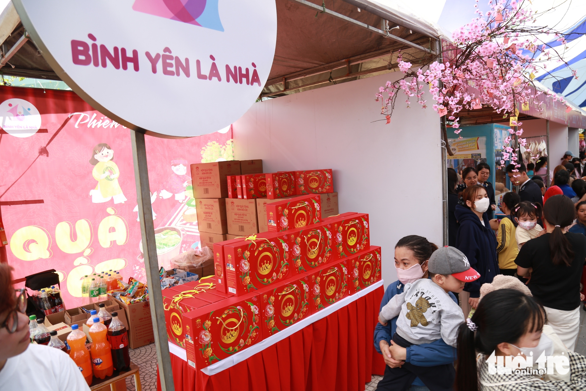 Phiên chợ với gần 20 gian hàng đủ các mặt hàng thiết yếu cho bệnh nhân như quần áo, bánh kẹo Tết, sữa, nhu yếu phẩm. Bên cạnh đó là khu trò chơi dân gian, máy gắp thú, khu chụp hình phong cách Hàn Quốc, nơi những đứa trẻ lần đầu được mặc đồ đẹp, tạo dáng trước ống kính trong không khí xuân.