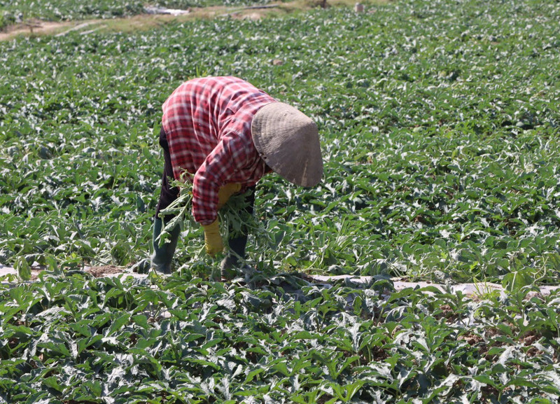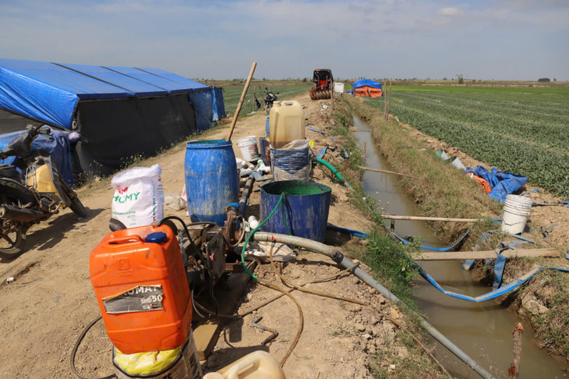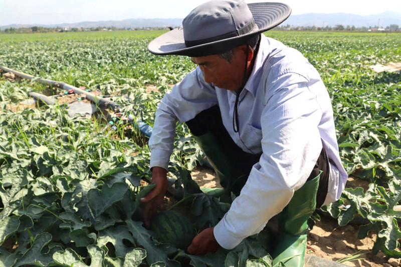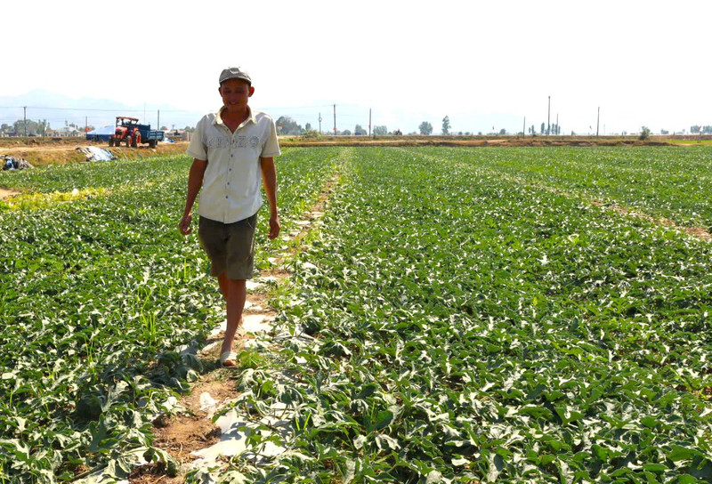 Sau nhiều tháng chăm sóc, chỉ vài tuần nữa người dân sẽ thu hoạch dưa hấu. Thời điểm này cần làm cỏ, tưới nước, ghim dây, tuyển trái nên người dân buộc phải ở lại ruộng chăm sóc, bảo vệ.