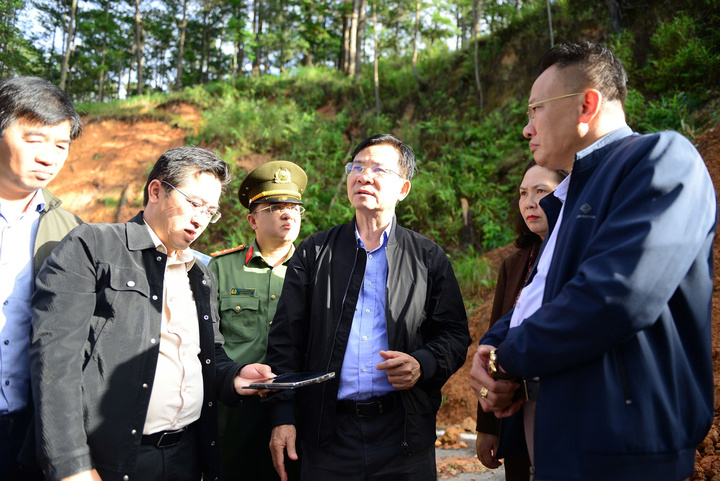 Tại đây, Chủ tịch UBND tỉnh Lâm Đồng Hồ Văn Mười yêu cầu các đơn vị liên quan phong tỏa, cắt cử lực lượng túc trực, ngăn chặn người và phương tiện vào khu vực sạt lở để đảm bảo an toàn.