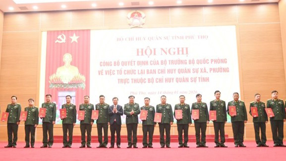Ngày 14/1, Bộ CHQS tỉnh Phú Thọ tổ chức Hội nghị công bố các quyết định của Bộ trưởng Bộ Quốc phòng và Tổng Tham mưu trưởng Quân đội nhân dân Việt Nam về việc tổ chức lại Ban CHQS xã, phường trực thuộc Bộ CHQS tỉnh. Đồng thời, Bộ CHQS tỉnh công bố các quyết định của Quân khu 2 về điều động, bổ nhiệm 148 cán bộ giữ chức Chỉ huy trưởng Ban CHQS 148 xã, phường trên địa bàn tỉnh.