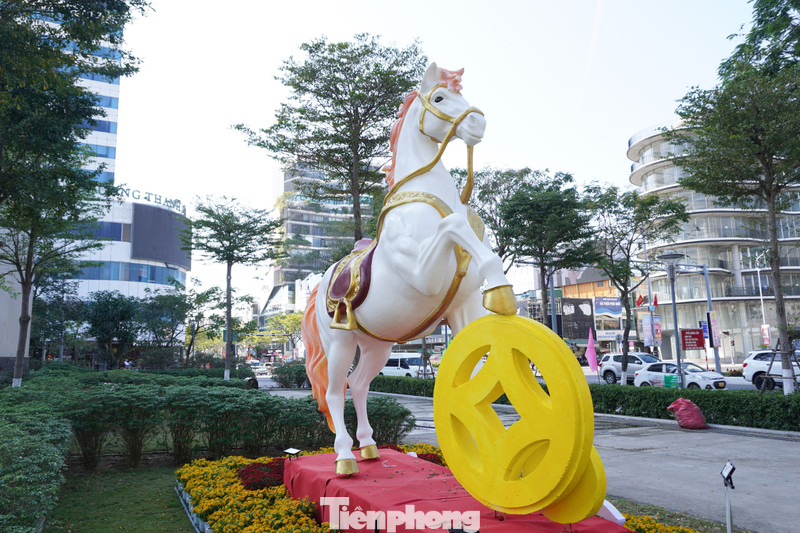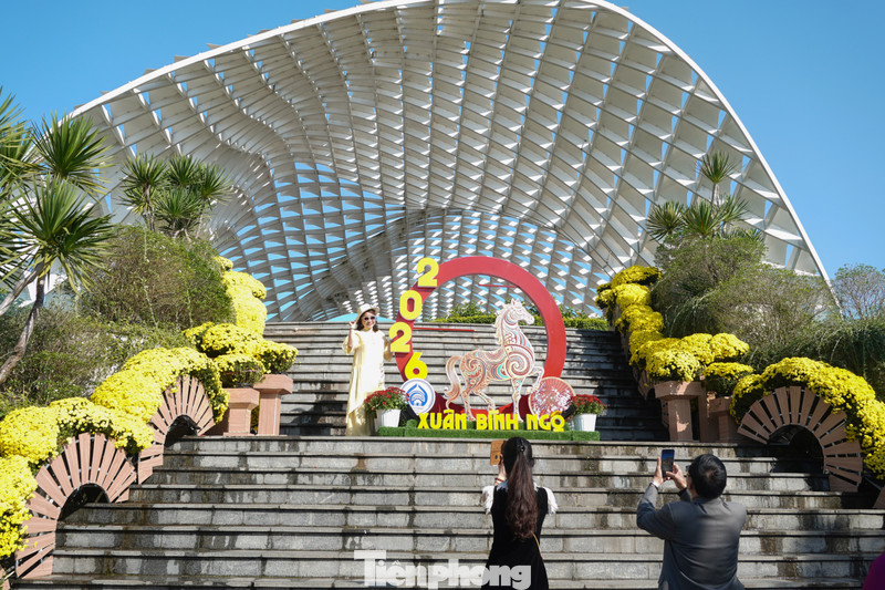Trên các tuyến đường trung tâm TP. Đà Nẵng, không khí Tết lan tỏa rộn ràng với cờ hoa, tiểu cảnh Tết rực rỡ, thu hút đông đảo người dân và du khách check-in, dạo phố. Đà Nẵng "khoác áo mới" đón Tết với kỳ vọng vào một năm mới khởi sắc.