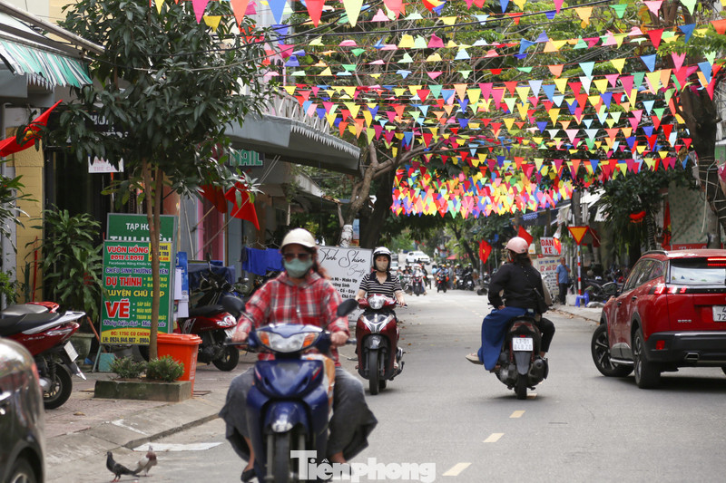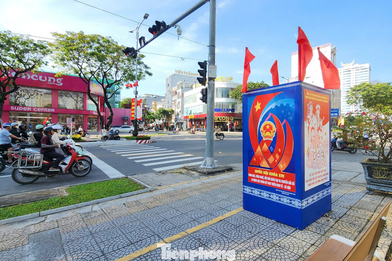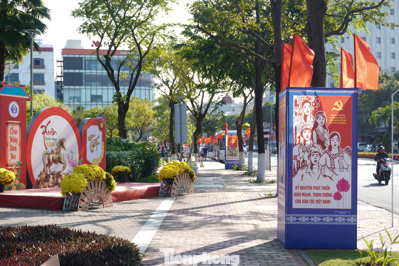 Không chỉ rực rỡ sắc xuân, nhiều tuyến đường còn được trang hoàng với các pano, khẩu hiệu chào mừng cuộc bầu cử đại biểu Quốc hội và Hội đồng nhân dân các cấp sắp tới, tạo nên bầu không khí sôi động, vừa ấm áp ngày Tết, vừa thể hiện tinh thần hướng tới sự kiện chính trị quan trọng của đất nước.