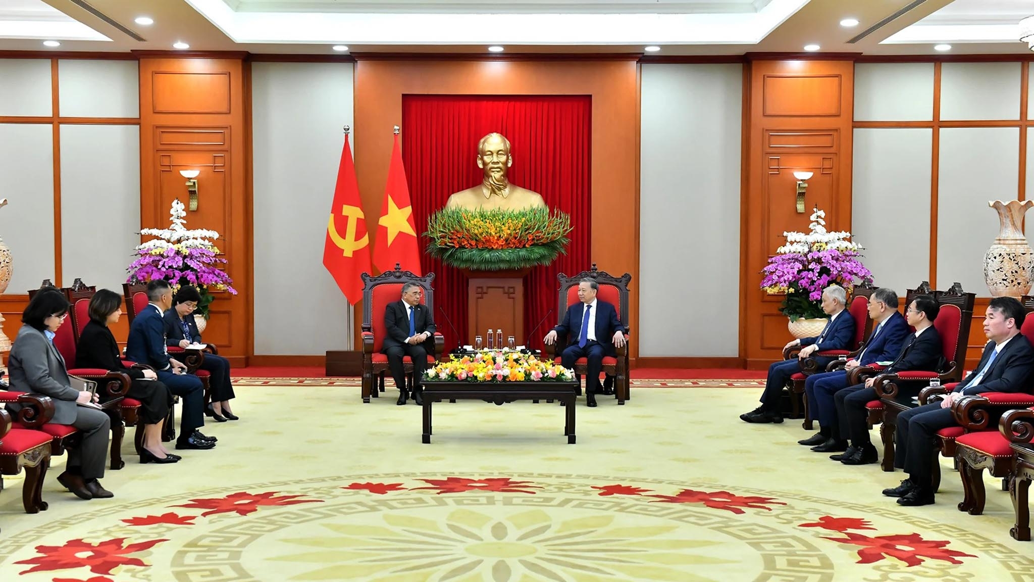 Tổng Bí thư Tô Lâm tiếp Đại sứ Philippines tại Việt Nam Meynardo Los Banos Montealegre ngày 24/4. (Nguồn: Nhân Dân)