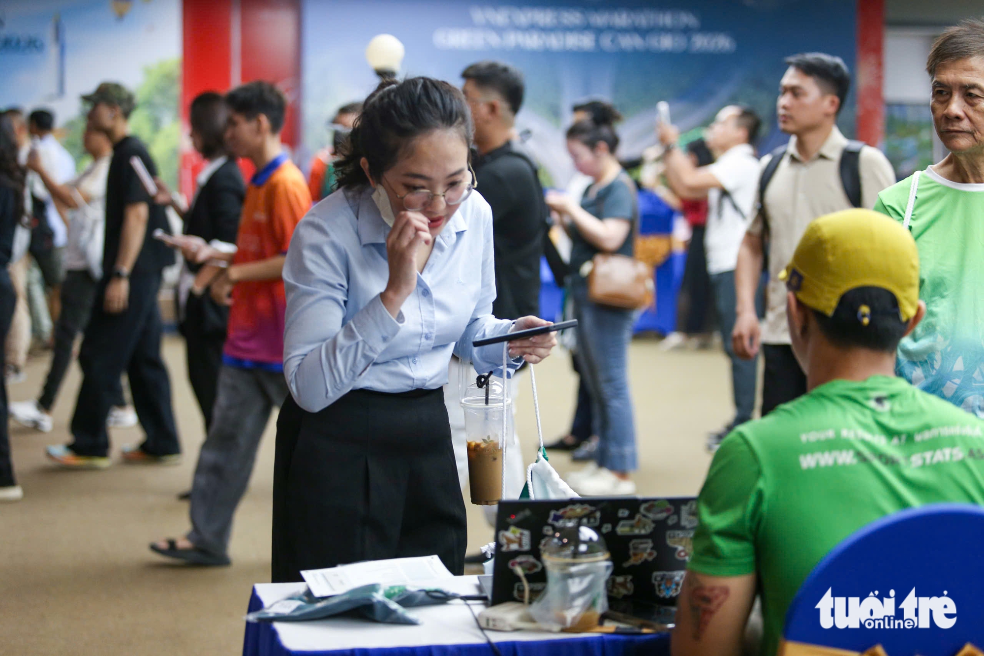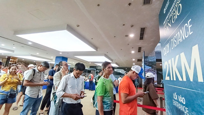 Các runner xếp hàng đợi đến lượt nhận Bib - Ảnh: THANH ĐỊNH