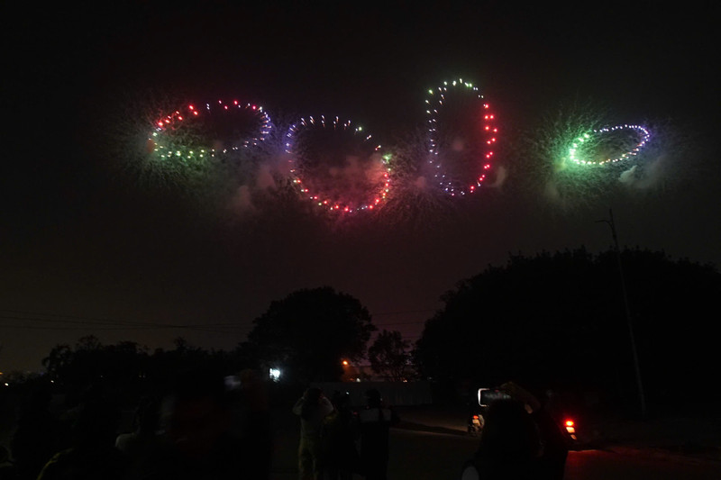 Bầu trời khu vực sân vận động Mỹ Đình tối 18/1 rực sáng với màn pháo hoa. Đây là điểm nhấn trong buổi sơ duyệt Chương trình nghệ thuật đặc biệt chào mừng thành công Đại hội Đại biểu toàn quốc lần thứ XIV của Đảng.