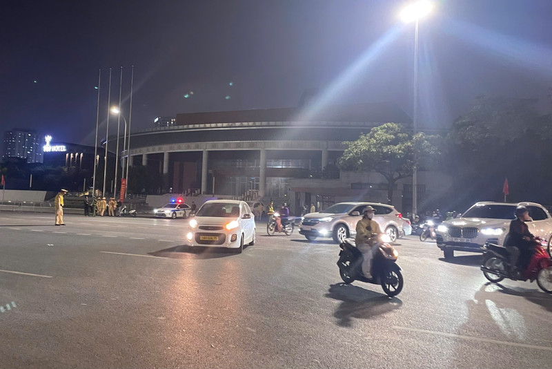 Lực lượng chức năng đã dựng hàng rào chắn, không cho phép các phương tiện lưu thông qua các khu vực xung quanh sân vận động Mỹ Đình.