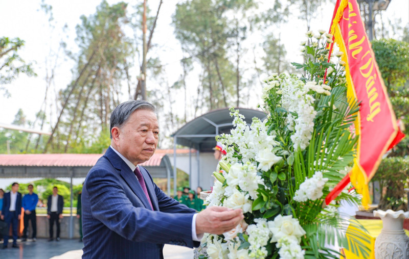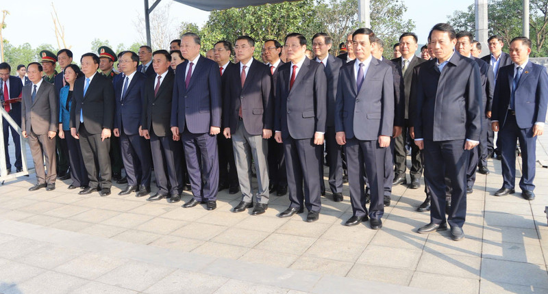 Chiều 29/1, Tổng Bí thư Tô Lâm cùng đoàn công tác đã đến dâng hoa, dâng hương Nhà bia tưởng niệm cố Tổng Bí thư Trần Phú, Khu mộ cố Tổng Bí thư Hà Huy Tập và các Anh hùng liệt sĩ Thanh niên xung phong tại Khu di tích Ngã ba Đồng Lộc (Hà Tĩnh).