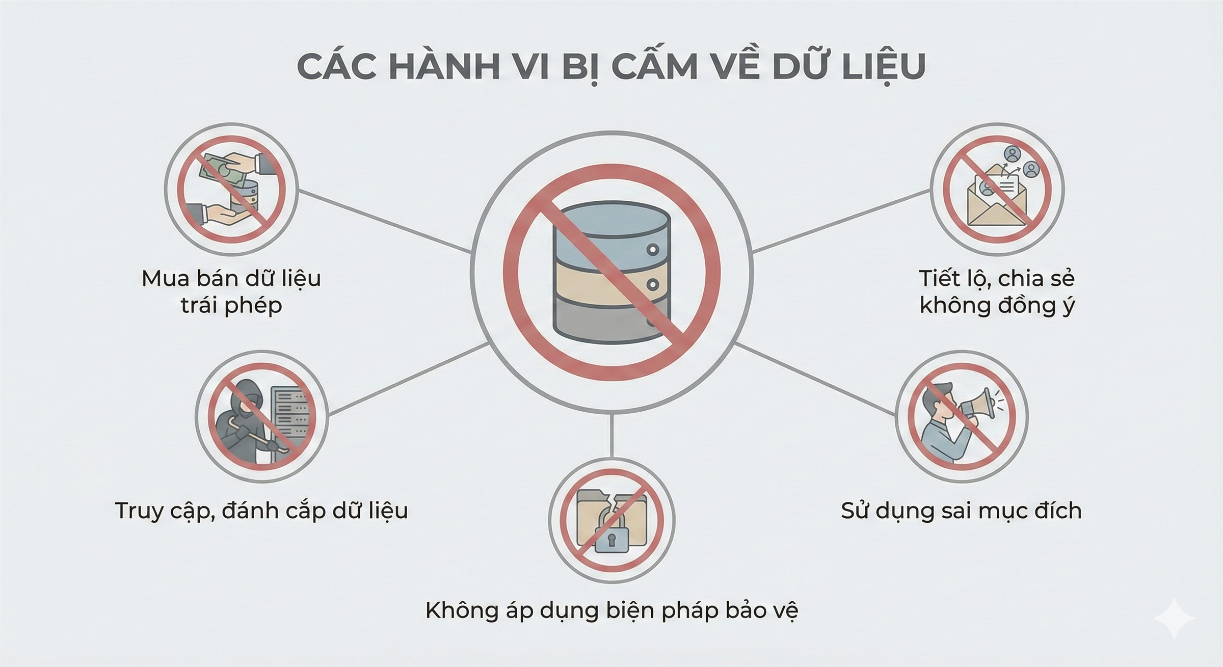 Bên cạnh quyền yêu cầu xóa dữ liệu, Luật Bảo vệ dữ liệu cá nhân thiết lập nhiều nguyên tắc quản lý mới đối với hoạt động xử lý dữ liệu. Theo khoản 4 Điều 6, hành vi mua, bán dữ liệu cá nhân trái phép là hành vi bị nghiêm cấm.
