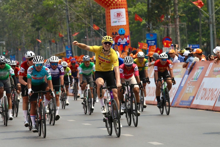 Tại chặng này, Nguyễn Văn Bình (đội TP.HCM Vinama) đang nắm giữ áo cam dành cho cua rơ Việt Nam xuất sắc nhất. Khi còn cách đích khoảng 300m, anh cùng các cua rơ mạnh bắt đầu bứt tốc.