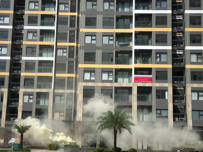 Vào đúng 9h37, kịch bản diễn tập bắt đầu được triển khai, mô phỏng một tình huống cháy nổ cực kỳ phức tạp tại tầng hầm B1 của khu chung cư Glory Heights thuộc dự án Vinhomes Grand Park. Ngay lập tức, hệ thống cảnh báo được kích hoạt, lực lượng chữa cháy tại chỗ nhanh chóng có mặt để sơ tán người dân và tổ chức chữa cháy.