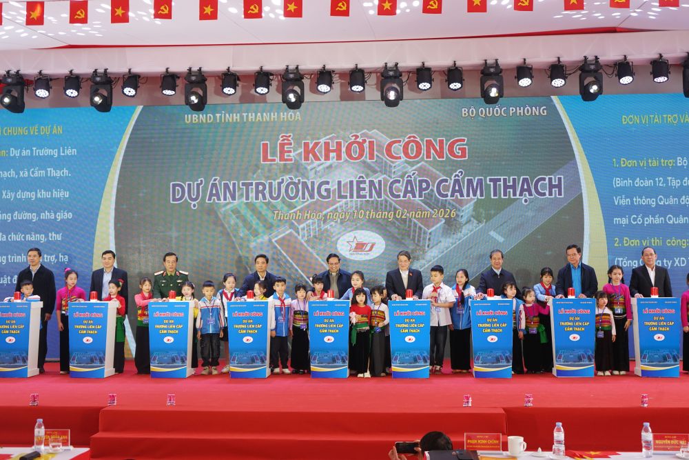 Sáng 10.2, tại xã Cẩm Thạch, tỉnh Thanh Hóa diễn ra lễ khởi công dự án Trường Tiểu học liên cấp Cẩm Thạch. Tham dự buổi lễ có Thủ tướng Chính phủ Phạm Minh Chính.
