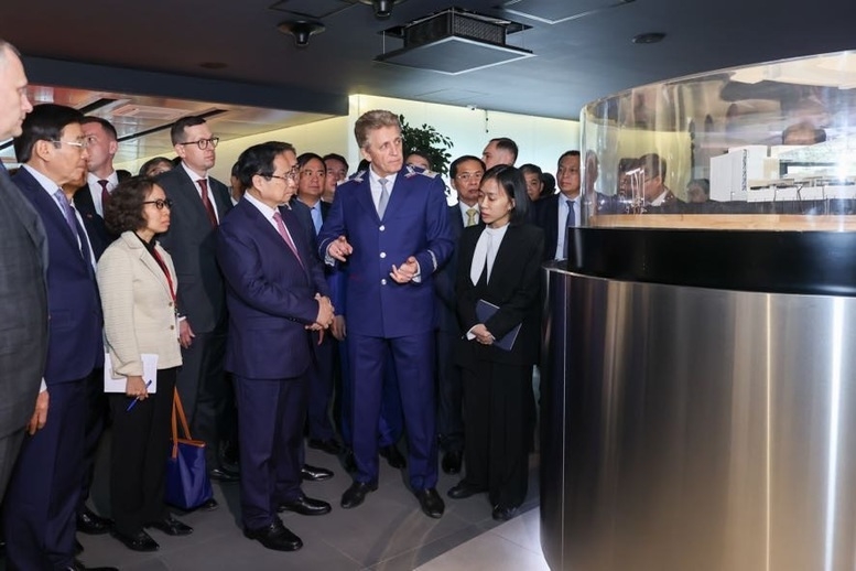 | Thủ tướng Phạm Minh Chính cùng đoàn đại biểu cấp cao Việt Nam thăm, làm việc tại Trung tâm điều khiển hệ thống tàu điện ngầm Moscow, Nga. (Nguồn: VGP) |