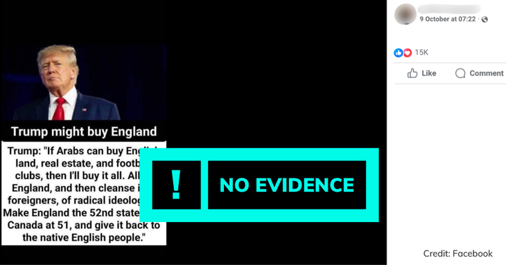 Đoạn phát ngôn được cho là của ông Trump, nói về ý định mua và biến Anh thành một bang của Mỹ được lan truyền suốt nhiều tháng.