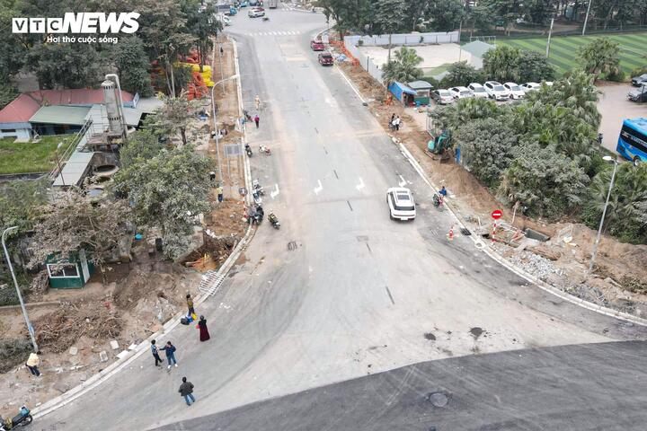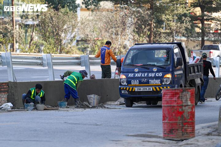 Video: Toàn cảnh nút giao thi công thần tốc, giải quyết ùn tắc cửa ngõ phía Nam Hà Nội Theo ghi nhận của PV Báo điện tử VTC News trong hai khung giờ cao điểm ngày 8/1, tình trạng ùn tắc giao thông tại khu vực được cải thiện rõ rệt. Một số hạng mục trên tuyến đường dẫn lên cao tốc đang được gấp rút hoàn thiện. Hệ thống cáp ngầm, đường ống ngầm đang được khẩn trương lắp đặt. Các công nhân hoàn thiện phần vỉa hè hai bên ngõ 15 Ngọc Hồi.