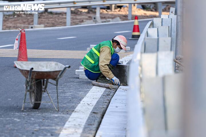 Một số hạng mục trên tuyến đường dẫn lên cao tốc đang được gấp rút hoàn thiện.