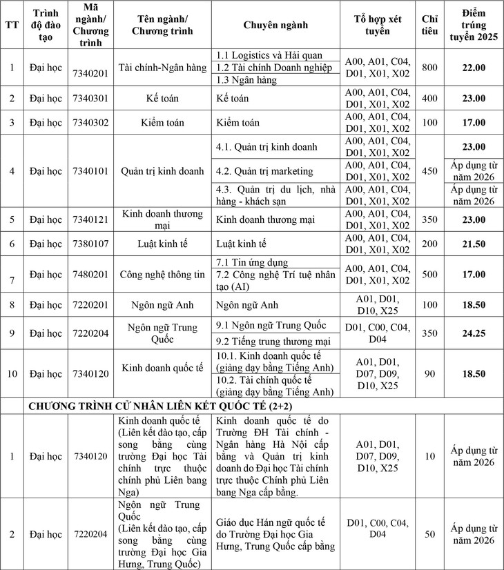 Trường ĐH Tài chính - Ngân hàng Hà Nội vừa thông báo trong năm 2026 sẽ tổ chức tuyển sinh 3.400 chỉ tiêu.