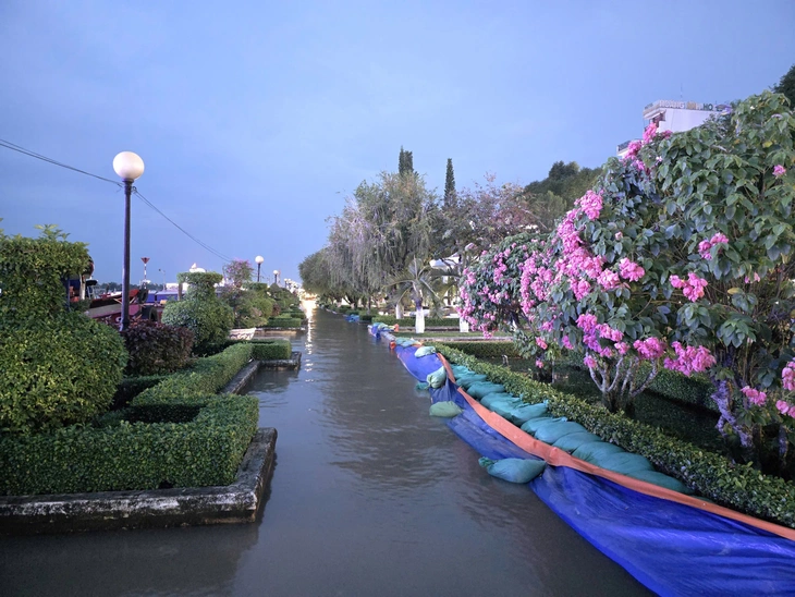 Lúc 18h mực nước triều cường đo được đã vượt mức 2,27m và còn có thể cao hơn nữa, vượt mức đỉnh triều lịch sử vào năm 2022.