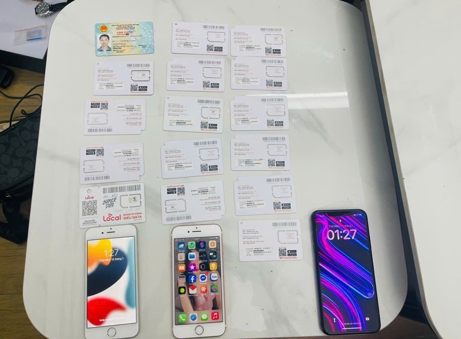Lực lượng chức năng đã thu giữ nhiều điện thoại, máy tính, sim rác và các tài liệu liên quan.
