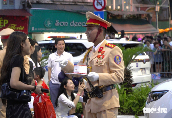 Một khoảnh khắc đặc biệt diễn ra ngay trước thềm tổng hợp luyện diễu binh lần hai tại quảng trường Ba Đình: trung úy cảnh sát đón sinh nhật tuổi 28 tuổi với người thân, chia sẻ khoảnh khắc tự hào khi đoàn diễu binh đi trong vòng tay nhân dân.