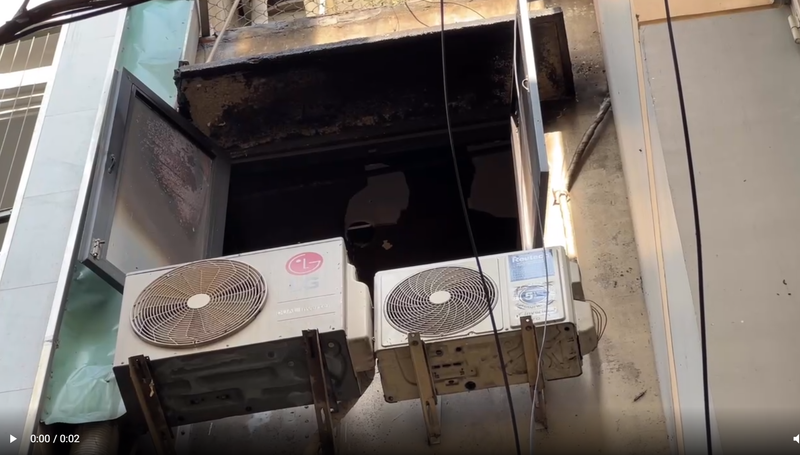 Ở mặt sau quán ăn, có 3 người la hét kêu cứu (2 phụ nữ và một người đàn ông). Người dân địa phương tìm được thang nhôm cao hơn 2m, tìm cách kê lên để nạn nhân theo thang thoát ra ngoài.